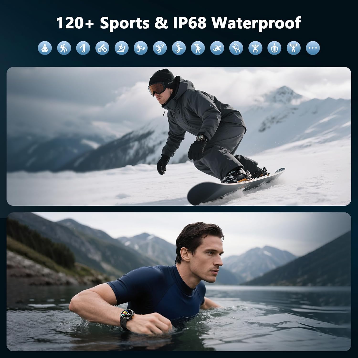 - 【 Military Grade Standard 】This smart watch uses special composite materials and a robust aluminum alloy bezel, having undergone rigorous durability testing. The IOWODO smart watch has passed various tests, including drilling, extrusion, high-temperature steam, salt spray, and liquid contamination tests. Waterproof, low-pressure resistant, and dustproof, it fears no harsh environment and is a reliable companion for outdoor adventures.