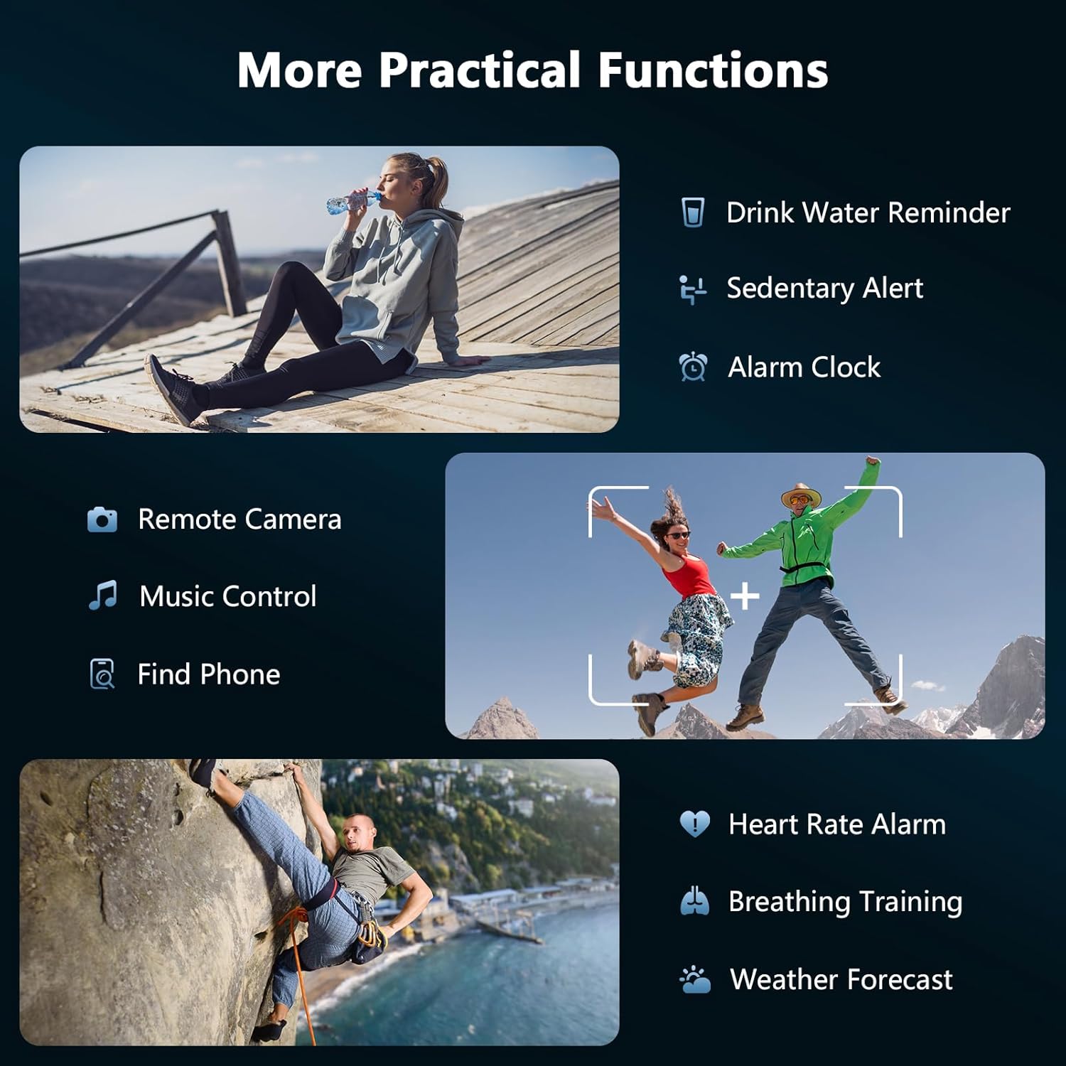 - 【24-Hour Health Monitoring】This smart fitness tracker watch features advanced sensors that accurately monitor heart rate, and saturation, helping you better understand your health. The automatic sleep tracking function observes sleep stages (deep sleep, light sleep, wakefulness) and provides comprehensive sleep quality analysis to improve your overall health. You can view your health overview on the Dafit app.